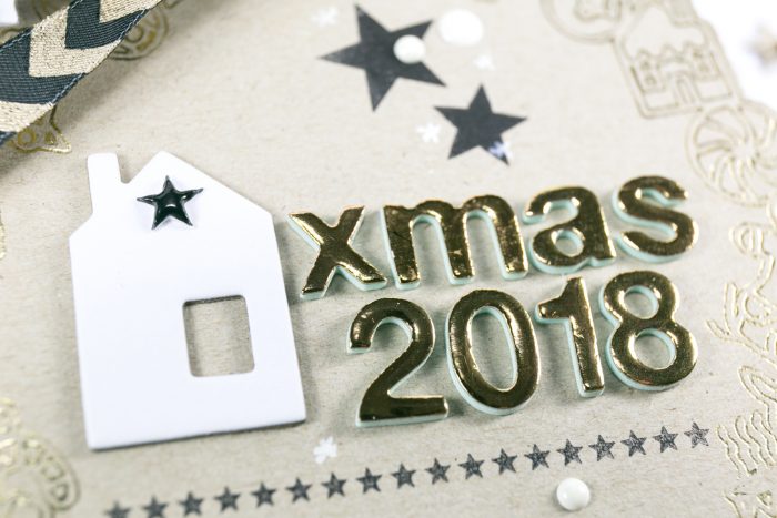 Für das Mini habe ich kraftfarbenen Cardstock und gold foliertes Vellum benutzt. Die Deko ist eher in homöopathischen Dosen zum Einsatz gekommen, aber Schätze habe ich dafür ausgegraben! Die Sache mit der Weihnachtskollektion, die man unbedingt komplett mit allem Chichi haben musste und dann… äh… naja, gut abgelagert eben. Aber was habe ich mich gefreut, als ich den Stern-Pin gefunden habe. Mein inneres Spielkind ist noch immer glücklich!