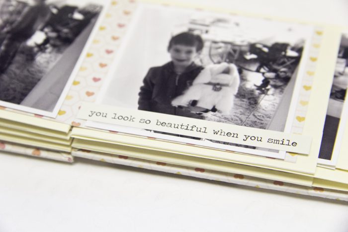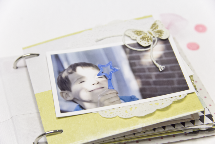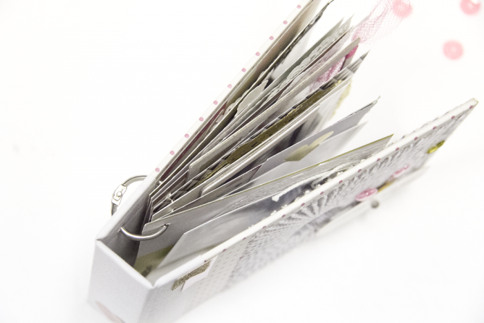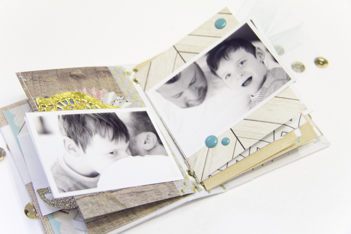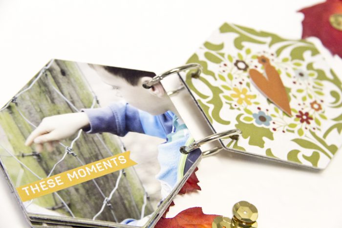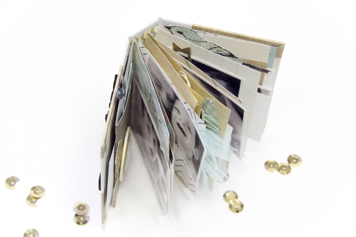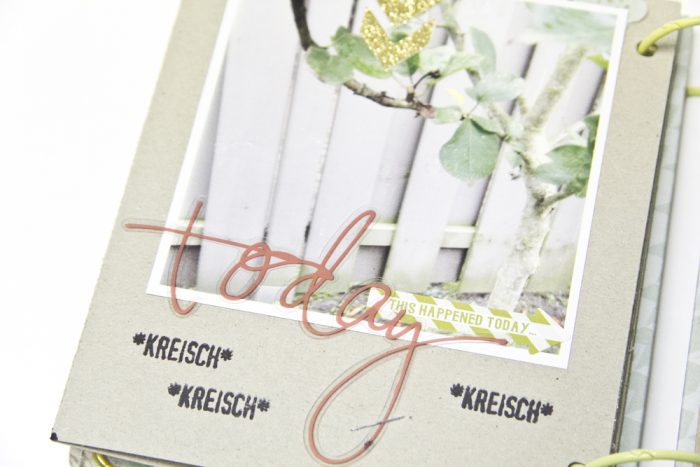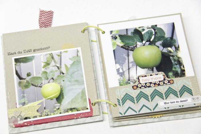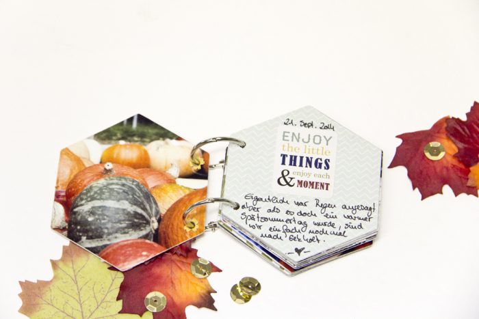 Ich mache selten das gleiche Mini nochmal, außer wenn ich Workshops gebe, aber dieses mit der Sechseckform und den ganzseitig ausgestanzten Bildern gibt es in verschiedenen Größen mittlerweile mehrfach.