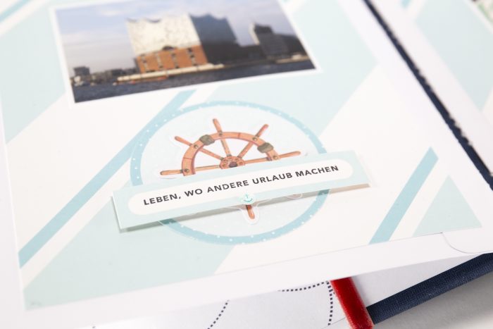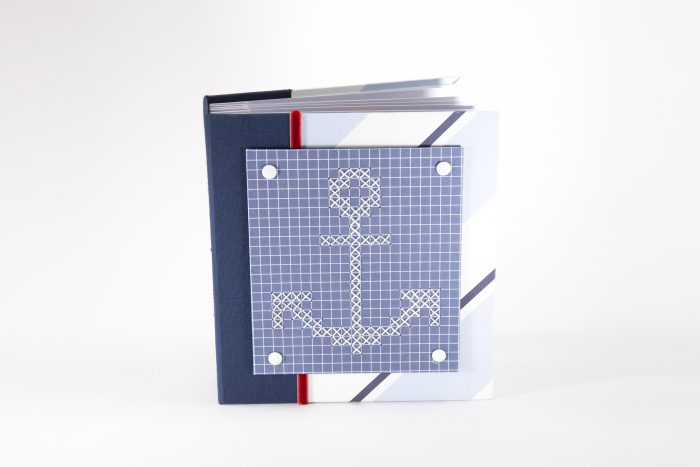 Als Mädchen aus dem Norden musste ich natürlich als erstes was maritimes gestalten und das passt perfekt für dieses Album mit der Kreuzstich Bindung. Die sieht übrigens viel komplizierter aus, als sie ist und es gibt auch eine Schummelvariante für Faule… ;-)
