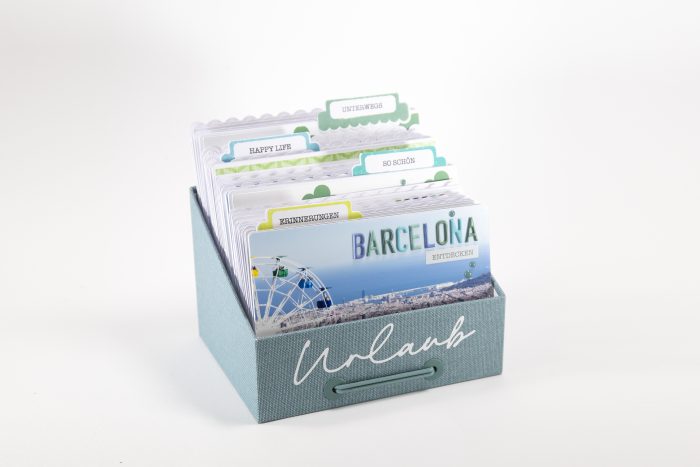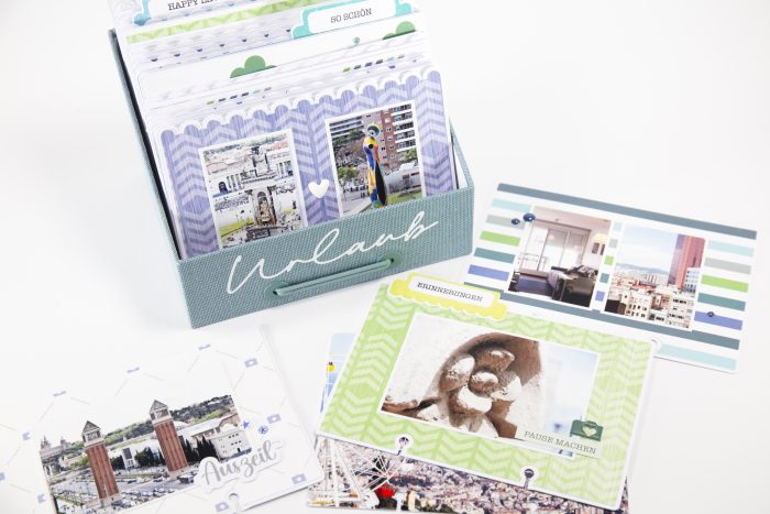 Ab in den Urlaub! Diesmal gibt es bei unserem Monatsworkshop ein Mini ohne Mini aber dafür mit Box im Memory Dex Style. Mit Platz für viele Fotos und Erinnerungen.