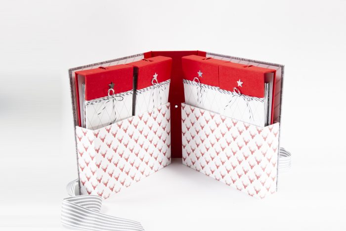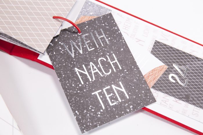 Das Album fällt wohl nicht mehr unter die Kategorie „Mini“ – was ist das für ein Klops geworden! Aber ist es nicht schön?? In das Cover sind zwei kleine Boxen eingearbeitet, in denen insgesamt vier Minialben Platz finden. Eins für jede Adventswoche.